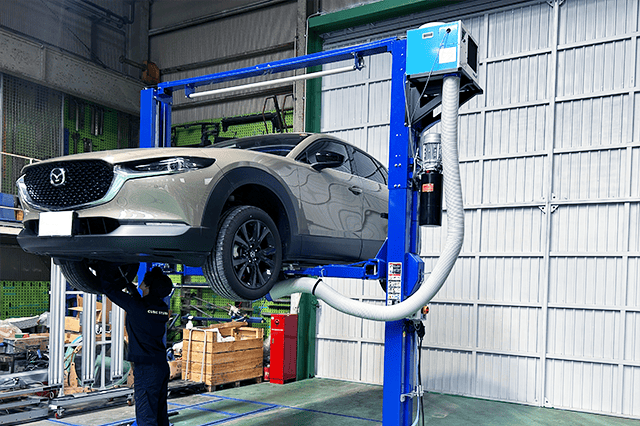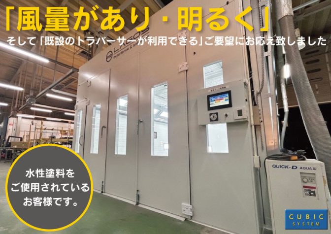 明々工業では、自動車の板金塗装に欠かせないCUBIC SYSTEM製品の製造・設置・メンテナンススタッフを募集中です。未経験からでも、優しい先輩が丁寧にサポートするので安心してご応募ください。