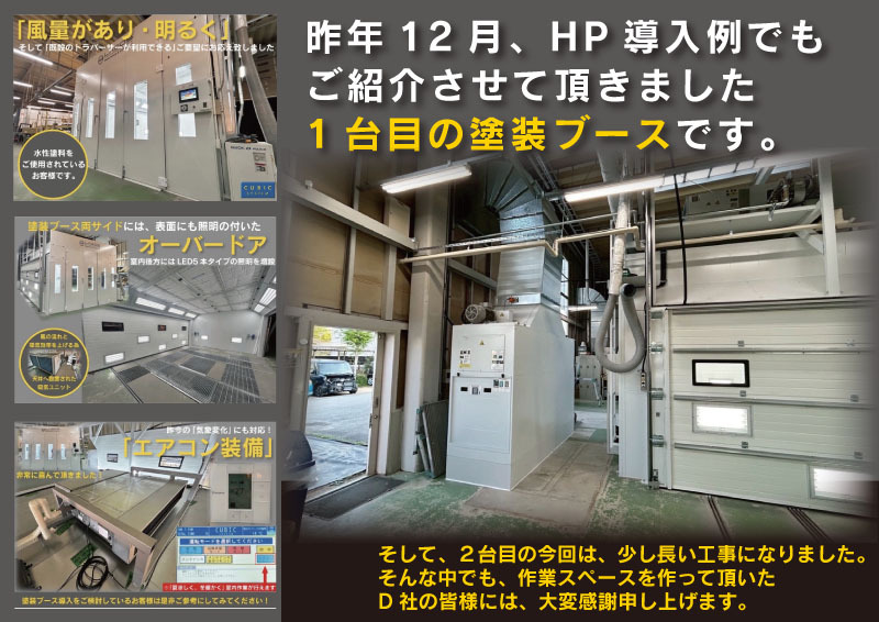 昨年12月、御使用されていた塗装ブース2台の内、I台をキュービック塗装ブースに更新。
