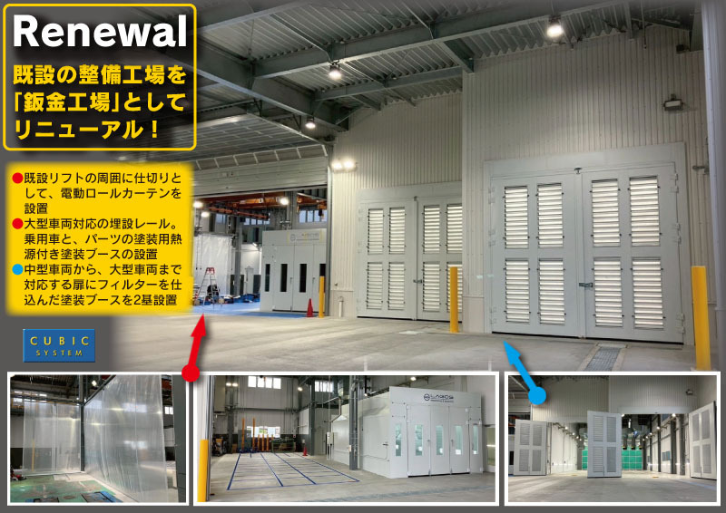 既設の整備工場を、鈑金工場としてリニューアル。