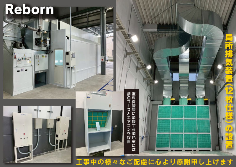 - 中型車両から、大型車両まで対応する扉にフィルターを仕込んだ大型塗装ブースを2基設置。