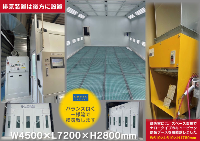 • 調色室も、スペース重視で、ナロータイプの調色ブースを設置致しました。