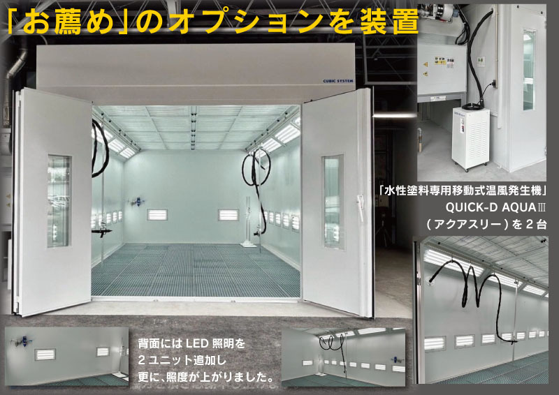 - 塗装ブース背面にはLED照明を2ユニット追加。 更に、照度が上がりました。