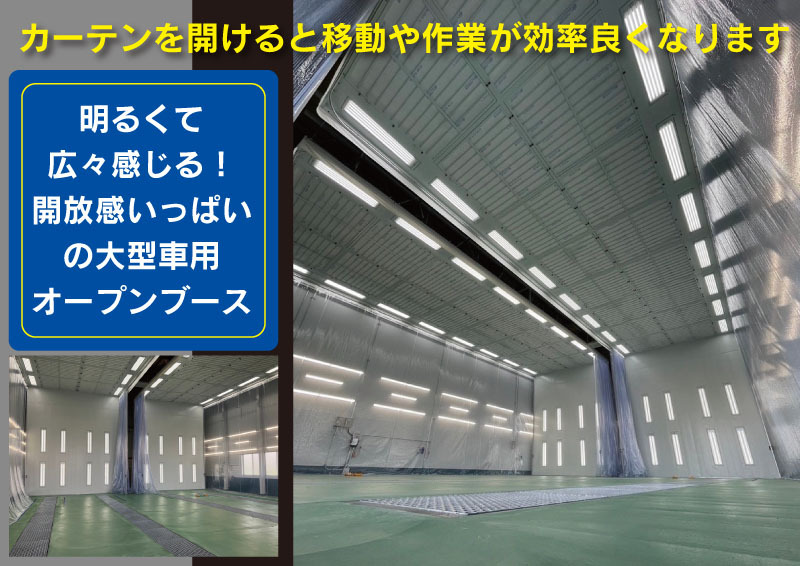 大型オープンブースは、W6000×L16640×H7000mmのハイタイプでインバーター制御です。