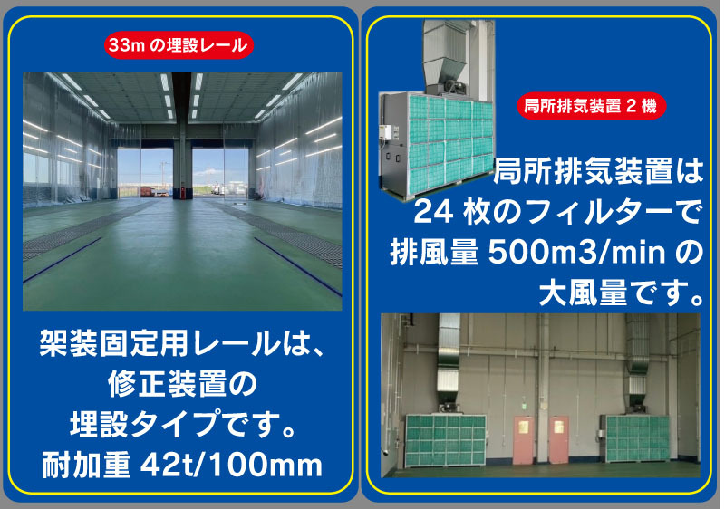 架装固定用レールは、修正装置の埋設タイプで、耐加重42t/100mmで、ガッシリ固定出来ます。