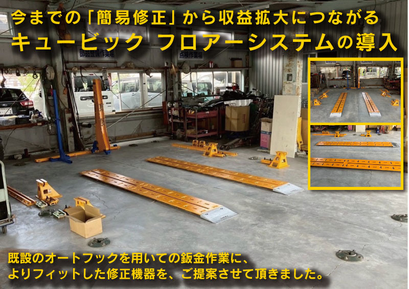 既設のオートフックを、用いての鈑金作業に、よりフィットした修正機器を、ご提案させて頂きました。