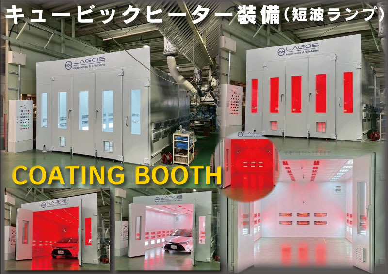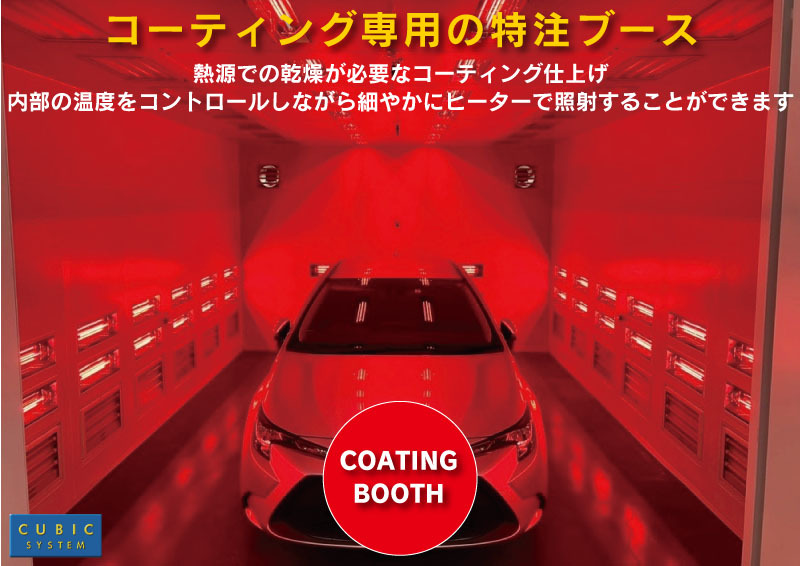 キュービックヒーター(短波ランプ)が装備されているコーティングブース!