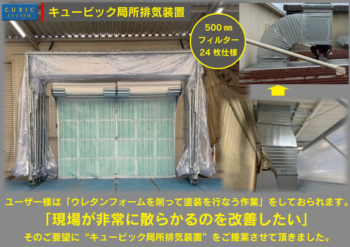 「現場が非常に散らかるのを改善したい」その、ご要望に“キュービック局所排気装置”をご提案させて頂きました。