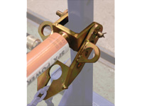 1. 専用の固定金具を使用しますので、万一クランプがはずれた場合でもタワー本体が後方に倒れることはありません。