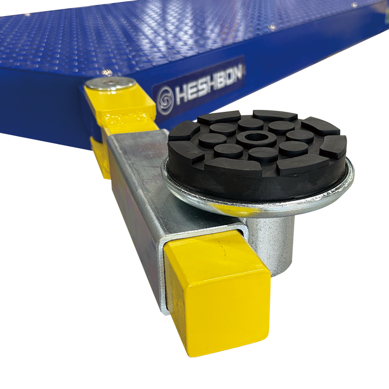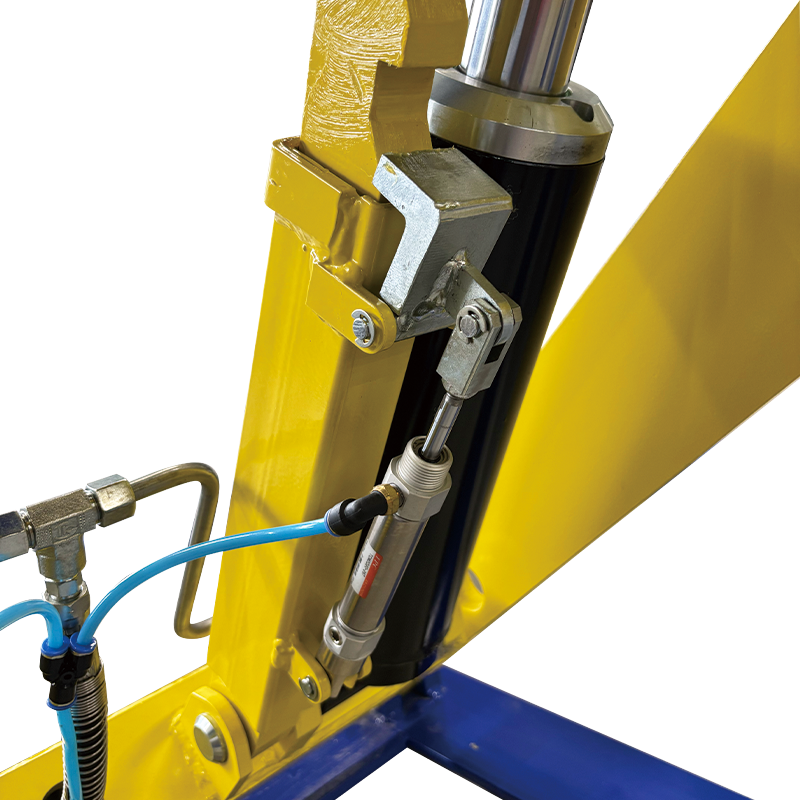 軽四輪車から大型乗用車までリフトアップできるように、油圧2シリンダーを搭載(能力2.5t)。